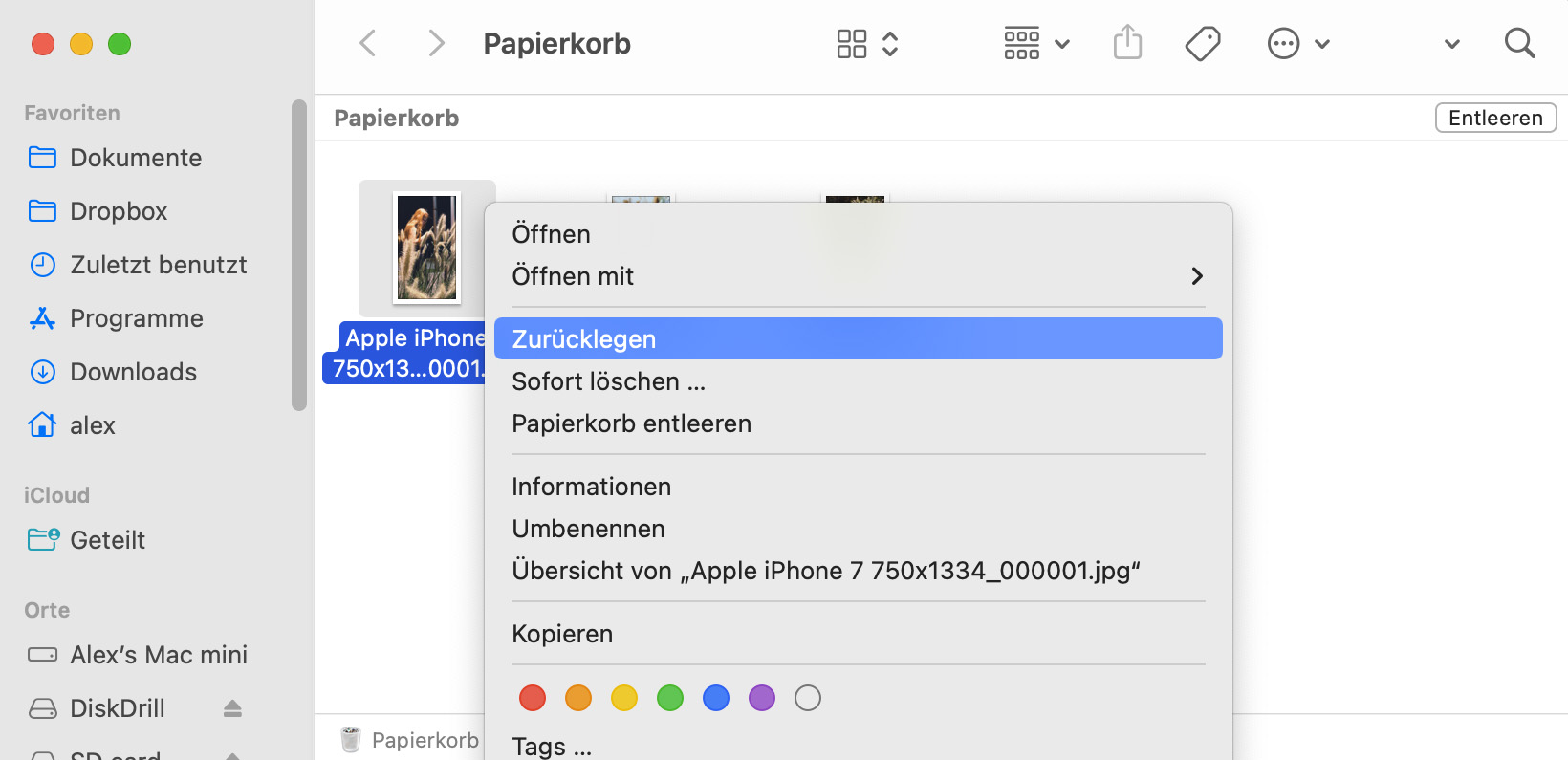 Wiederherstellen von Daten aus dem Papierkorb Ihres Mac