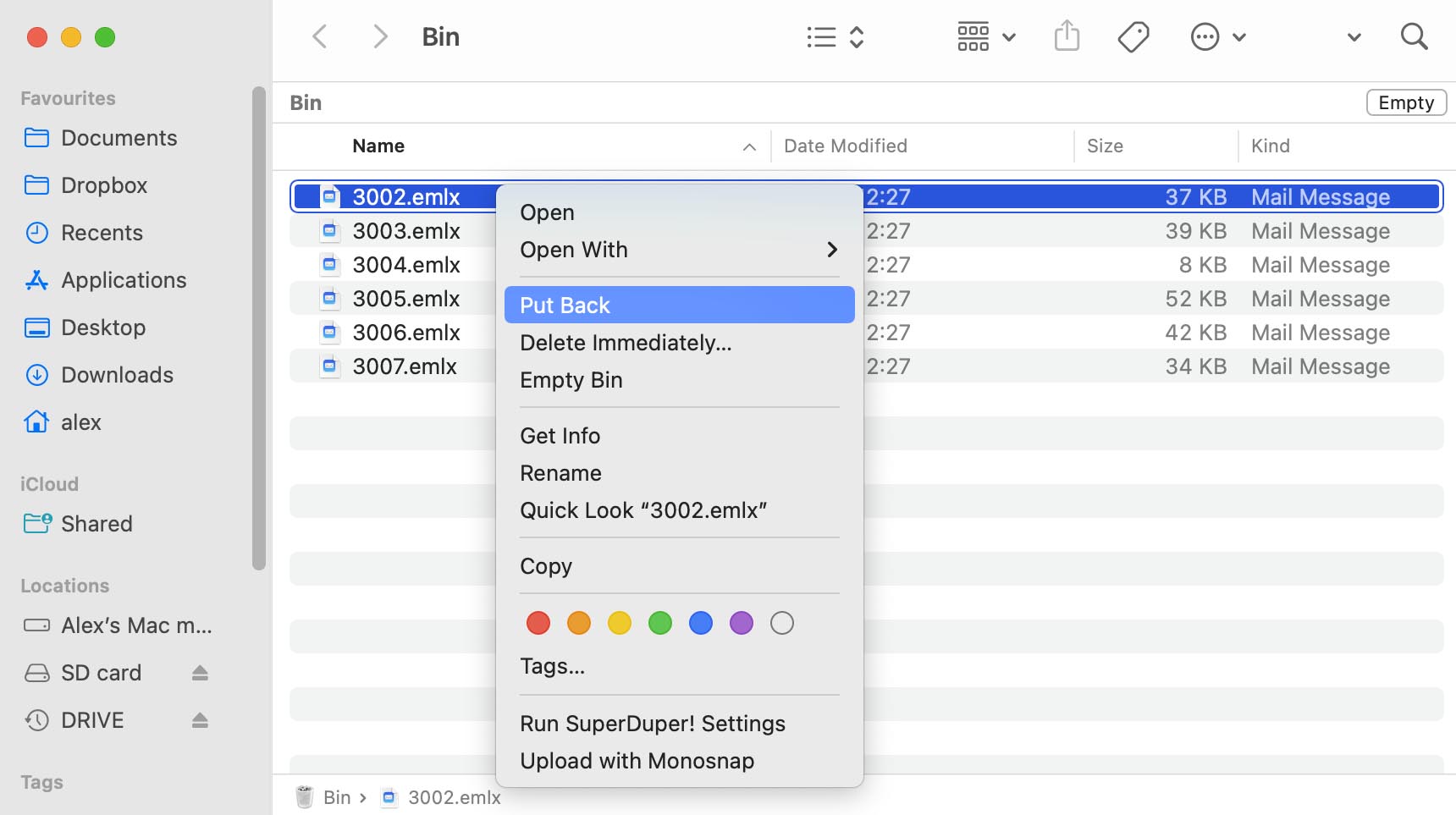 Use the following procedure to restore all emails deleted from your MacBook Air.