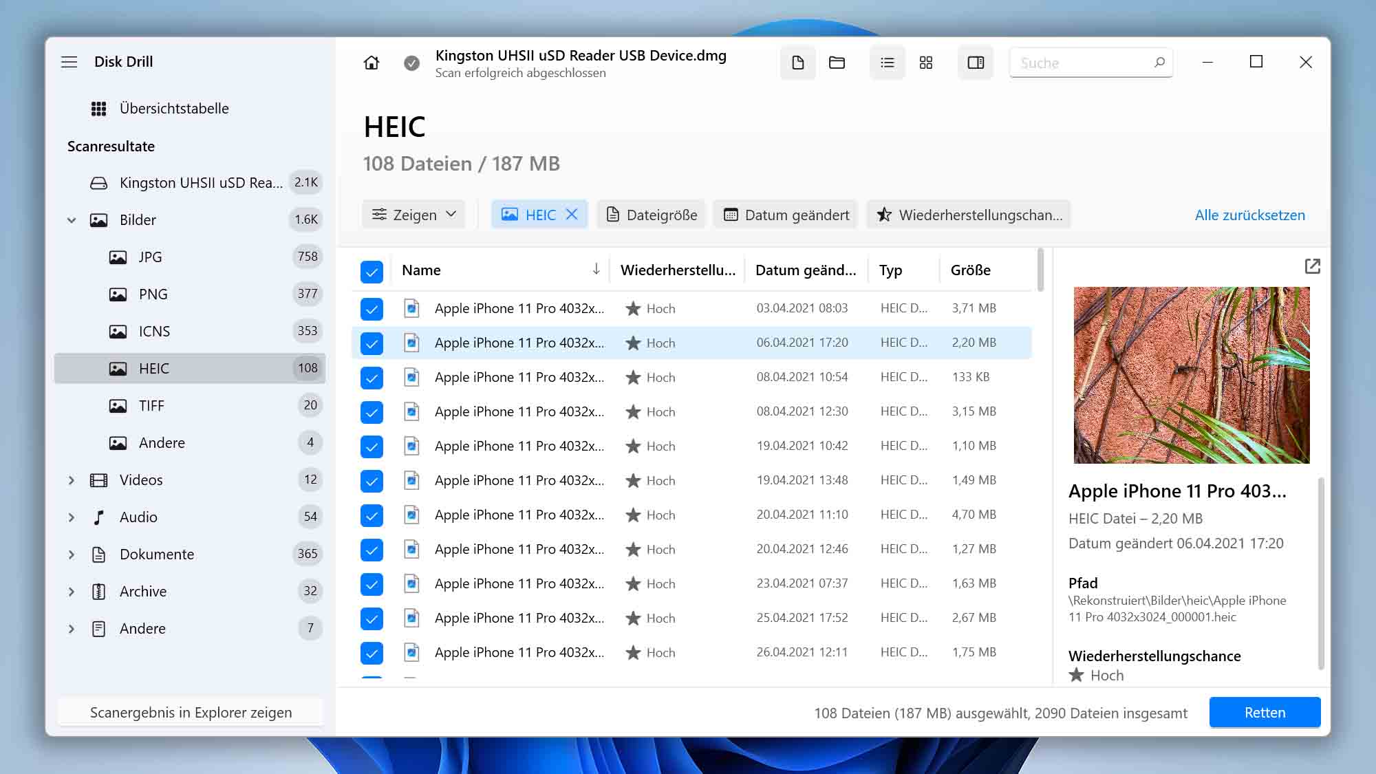 - Wählen Sie die gewünschten Dateien aus und retten Sie sie an einem sicheren Ort.