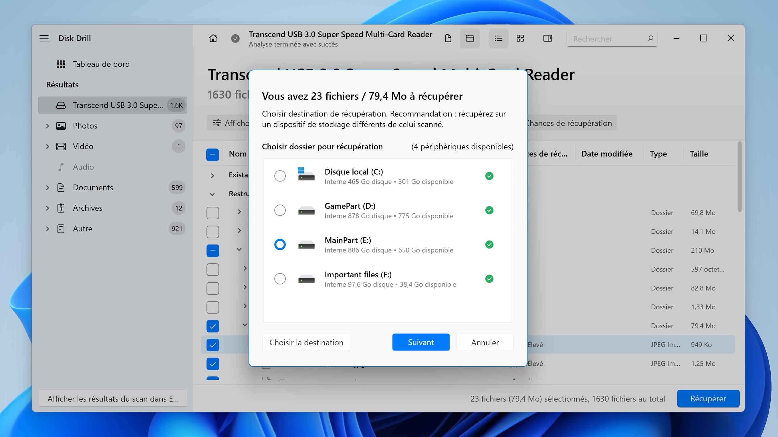 Étape 5 : Sélectionnez un emplacement approprié pour récupérer vos fichiers et confirmez votre choix.