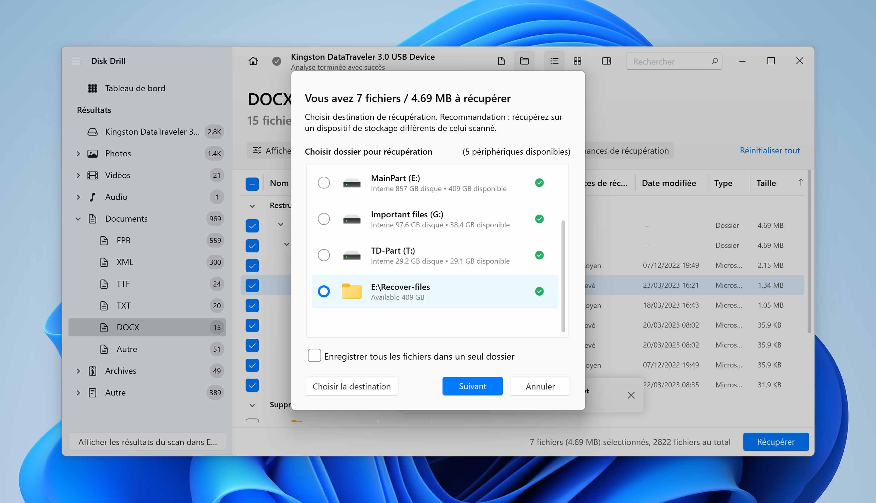 - Vous retrouverez ensuite le fichier récupéré dans son emplacement d’origine ou dans le dossier de destination choisi.