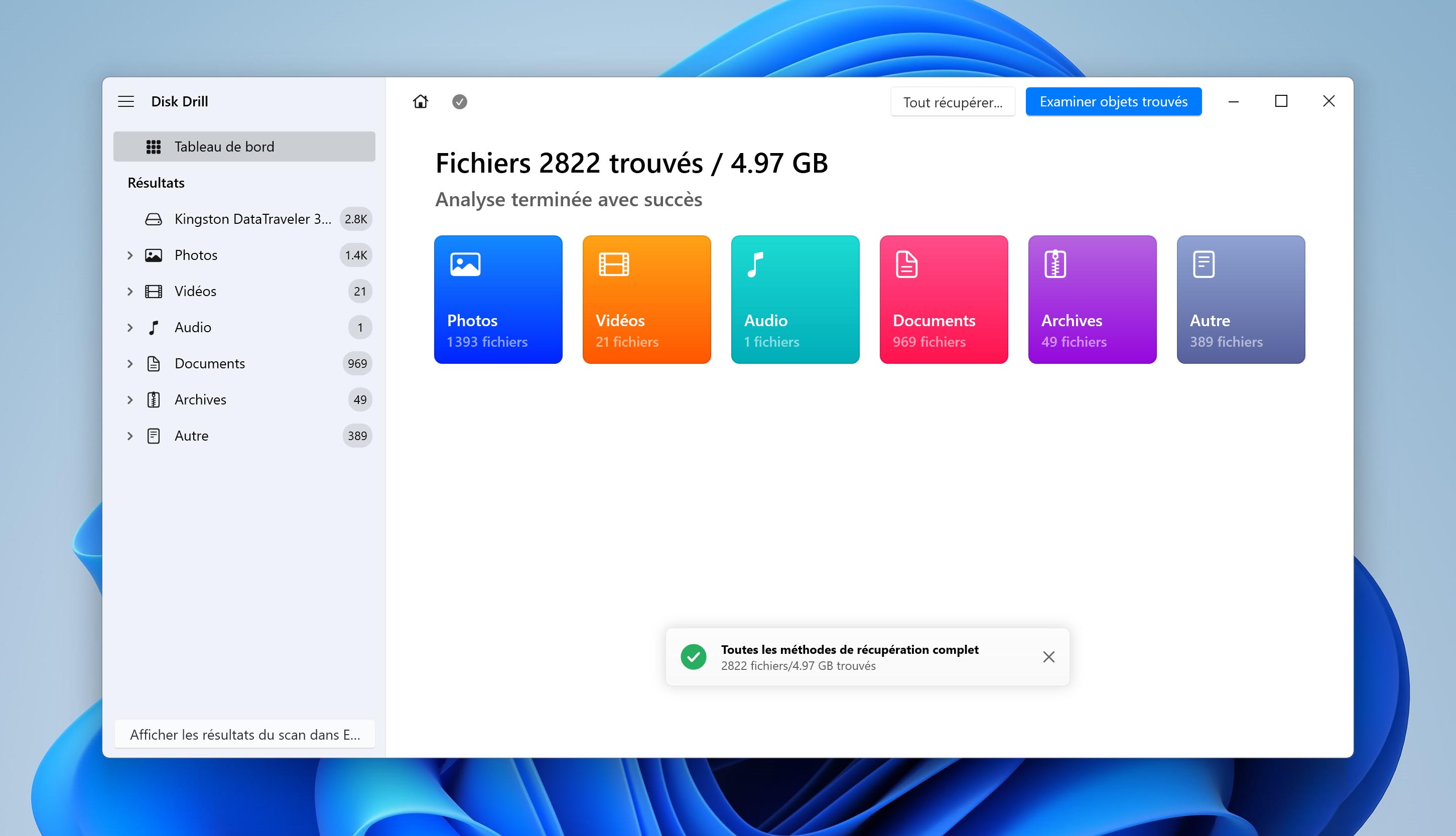 Une fois la récupération terminée, vous pourrez retrouver vos fichiers dans le dossier que vous avez indiqué précédemment.