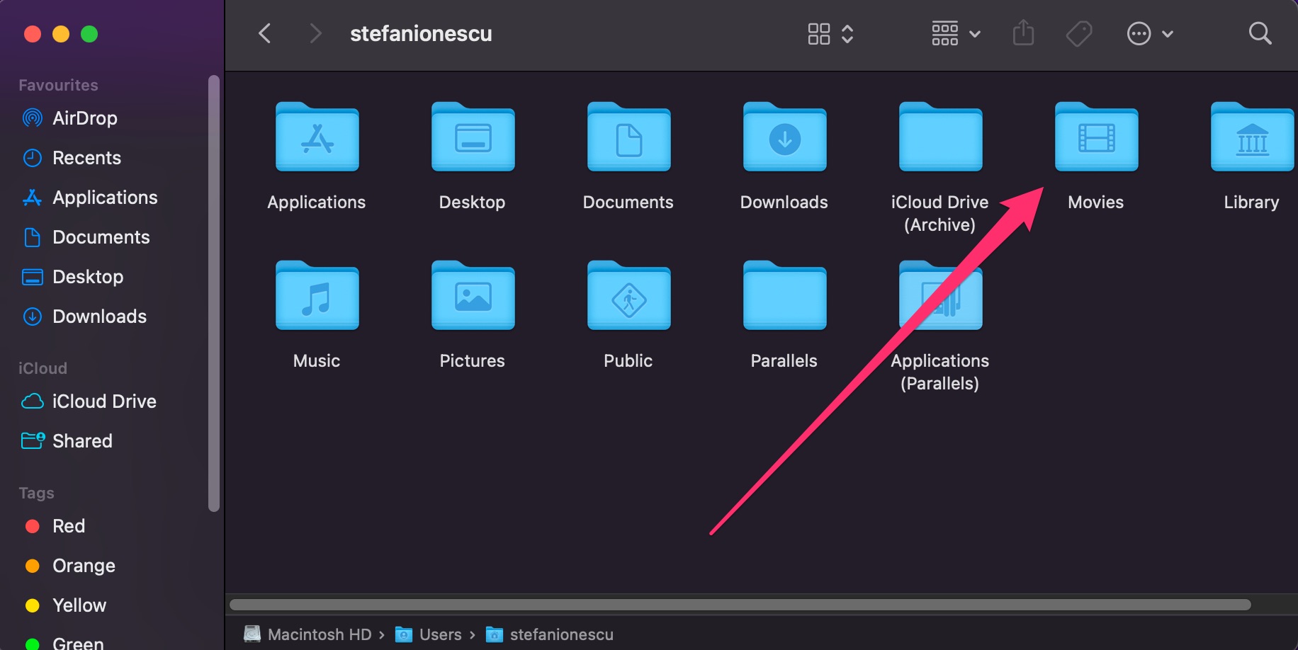 - Navigate through the folders to Containers -> iMovie -> Data -> Library -> Caches.