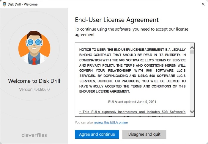 - You’ll be asked to accept the end-user license agreement. Click the Agree and continue button and a few succeeding buttons to proceed.